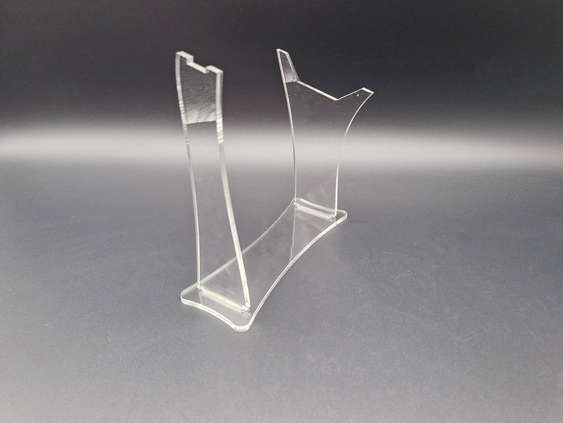 Made of clear acrylic this stand is extremely secure. Item will arrive in protective clear film that needs to be taken off.