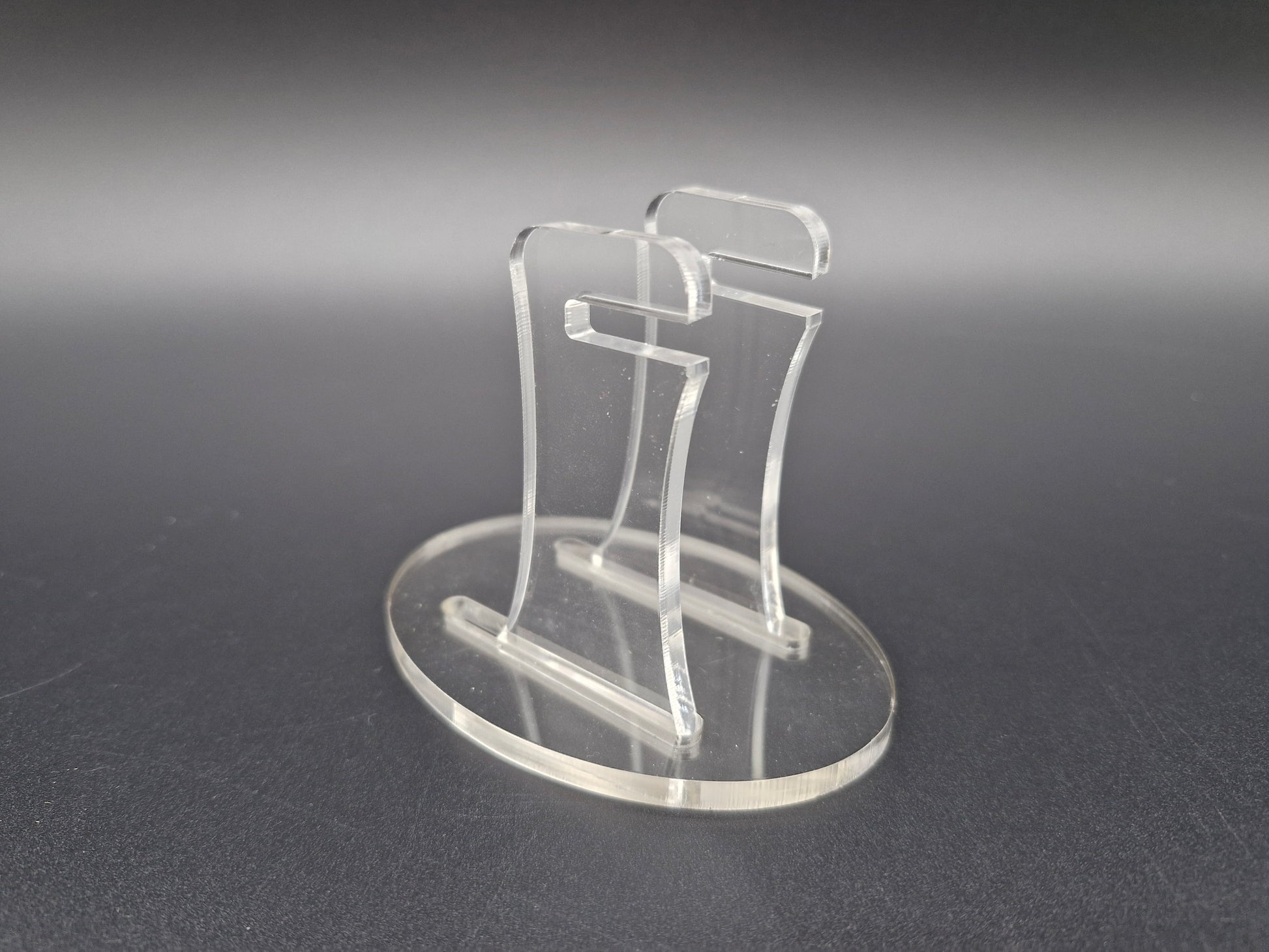 Made of clear acrylic this stand is extremely secure. Item will arrive in protective clear film that needs to be taken off.