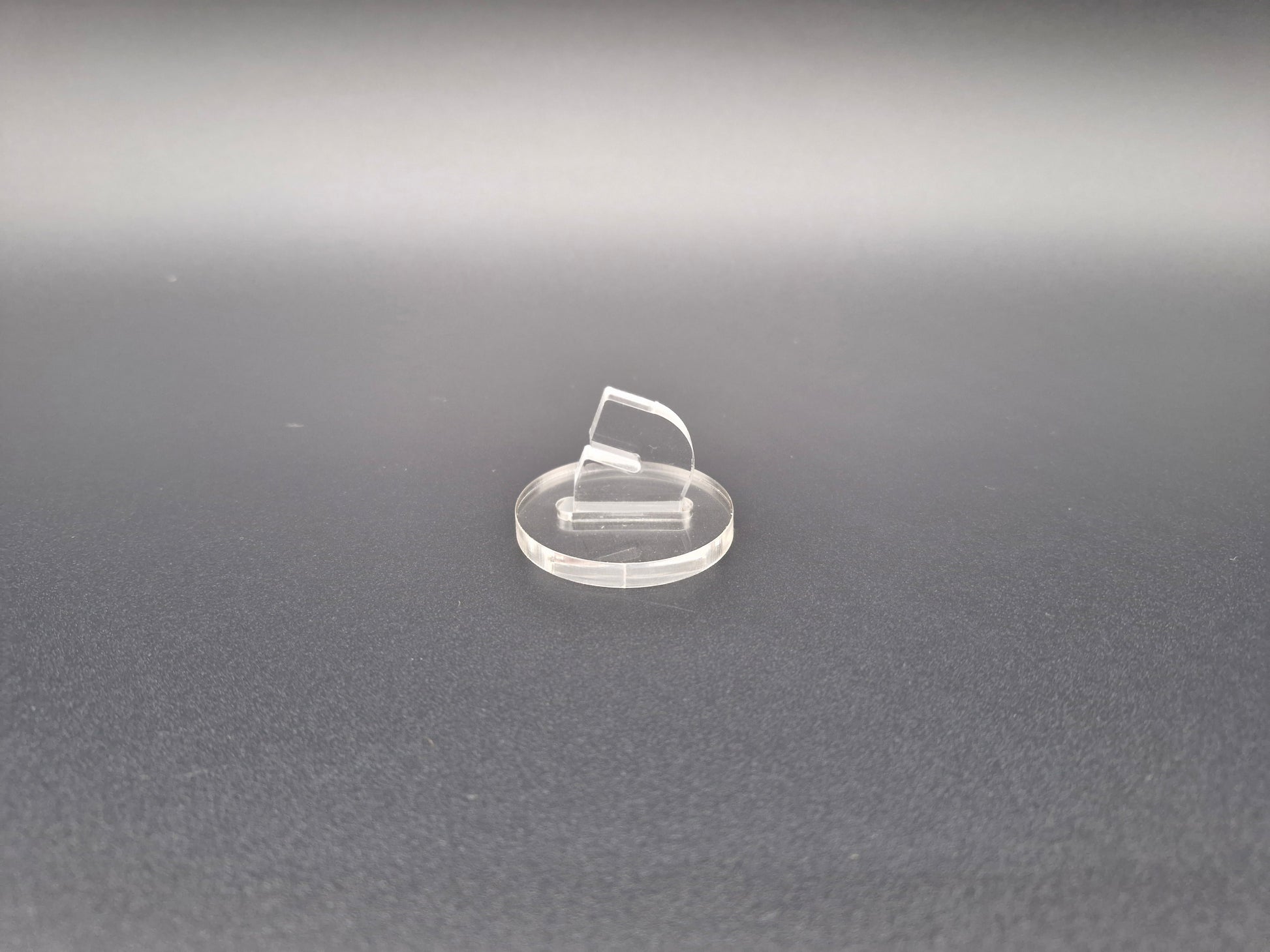 Made of clear acrylic this stand is extremely secure. Item will arrive in protective clear film that needs to be taken off.