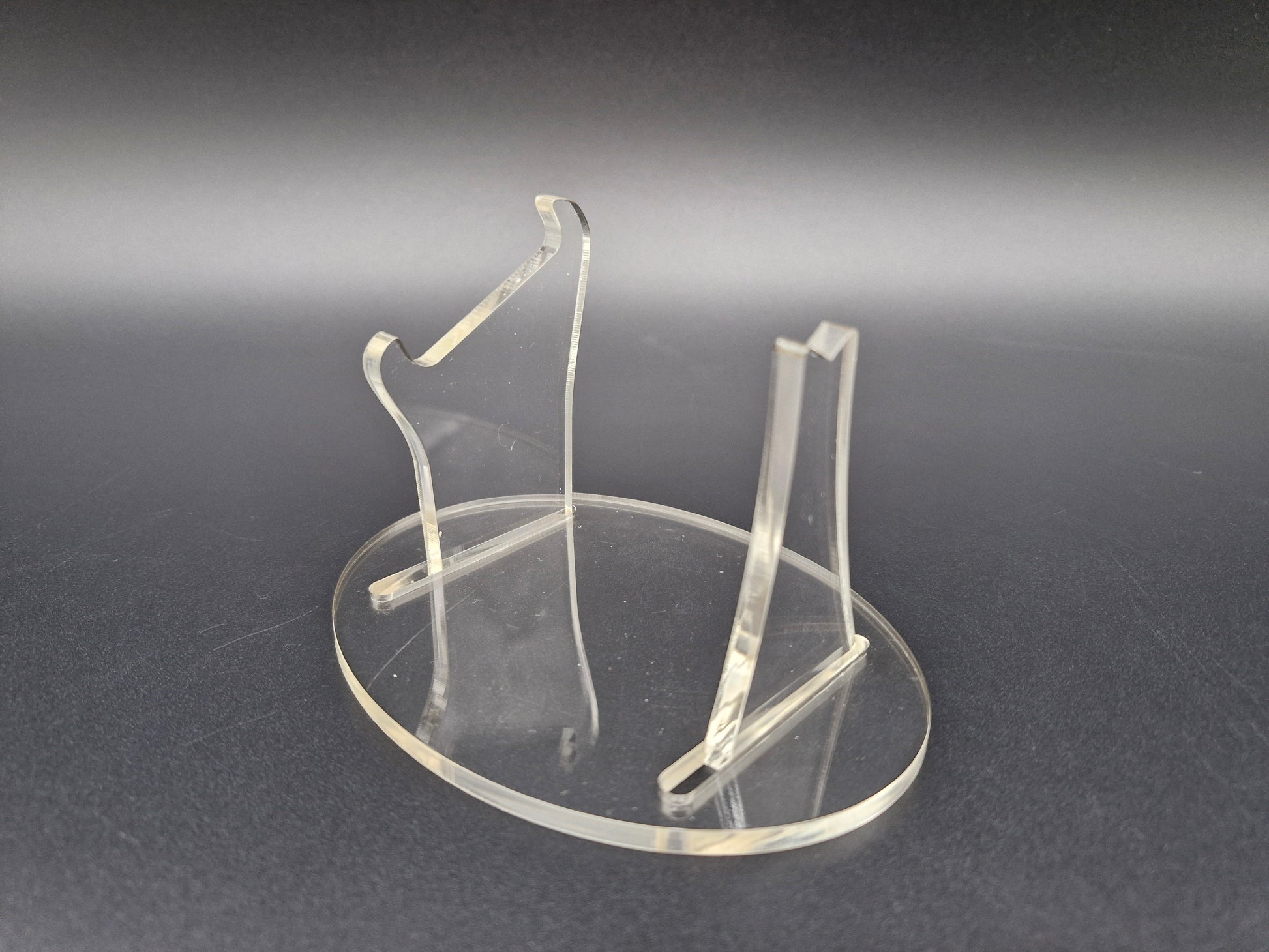 Made of clear acrylic this stand is extremely secure. Item will arrive in protective clear film that needs to be taken off.